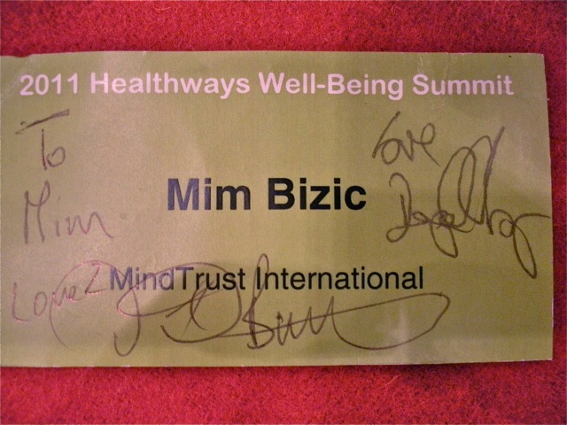 I was so proud to have been with Dr. Deepak Chopbra (Senior scientist/Poet-Prophet of alternative medicine) and Dan Buettner (National Geographic writer and explorer-author of THE BLUE ZONES), and Dan Pink (Author of DRIVE: The Surprising Truth of What Motivates Us-shared secrets of high performance and satisfaction in today's world), I asked them to sign my admission card!