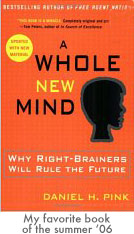 A WHOLE NEW MIND by Daniel Pink caused quite an educational stir and rightly so. "The future belongs to a different kind of person," Pink says. "Designers, inventors, teachers, storytellers — creative and empathetic right-brain thinkers whose abilities mark the fault line between who gets ahead and who doesn't." Pink claims we're living in a different era, a different age. An age in which those who "Think different" may be valued even more than ever.